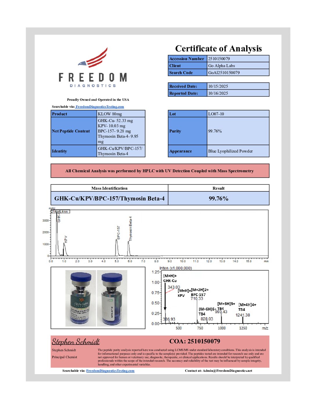 KLOW Blend: BPC-157 (10mg) / TB-500 (10mg) / GHKcu (50mg) / KPV (10mg) – Klow Blend by Alpha Labs is a high-purity, lyophilized peptide blend formulated for research use only.